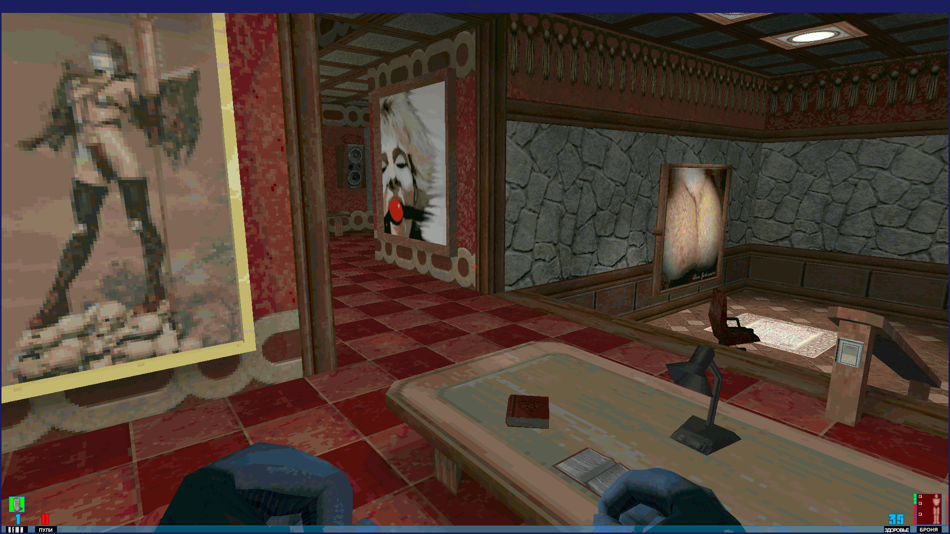 А ещё все поверхности с альфой были в клеточку (что не мешало проявляться багу сортировки, см скрин с лазерными лучами и витринами с алиенами). На одном из скринов Queen of Pain детектед на картине, а белые штуковины весьма похожи на фаллосы.