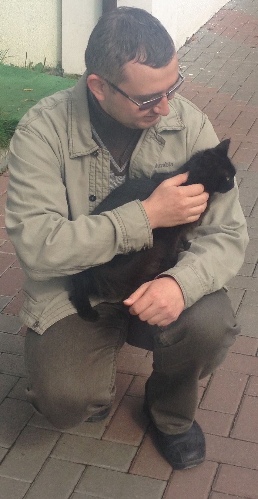Дружелюбный уличный котейка. Только начни гладить и он уже - прыг на колени.