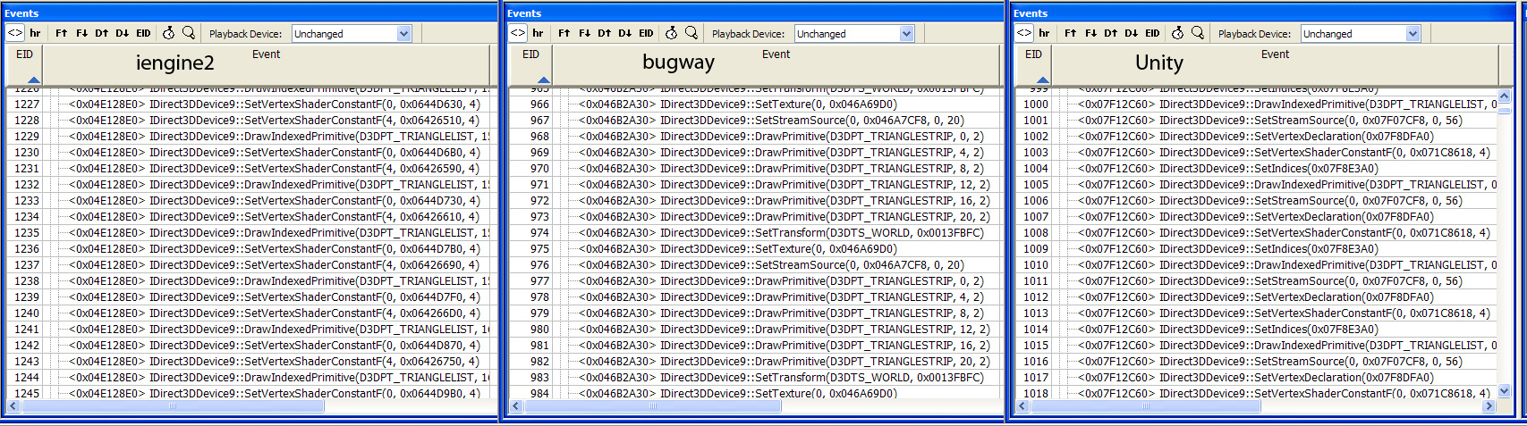 вот кстати любопытное сравнение - как выглядит цикл рисовки кубиков всех движков (кроме акселя) под пиксом.