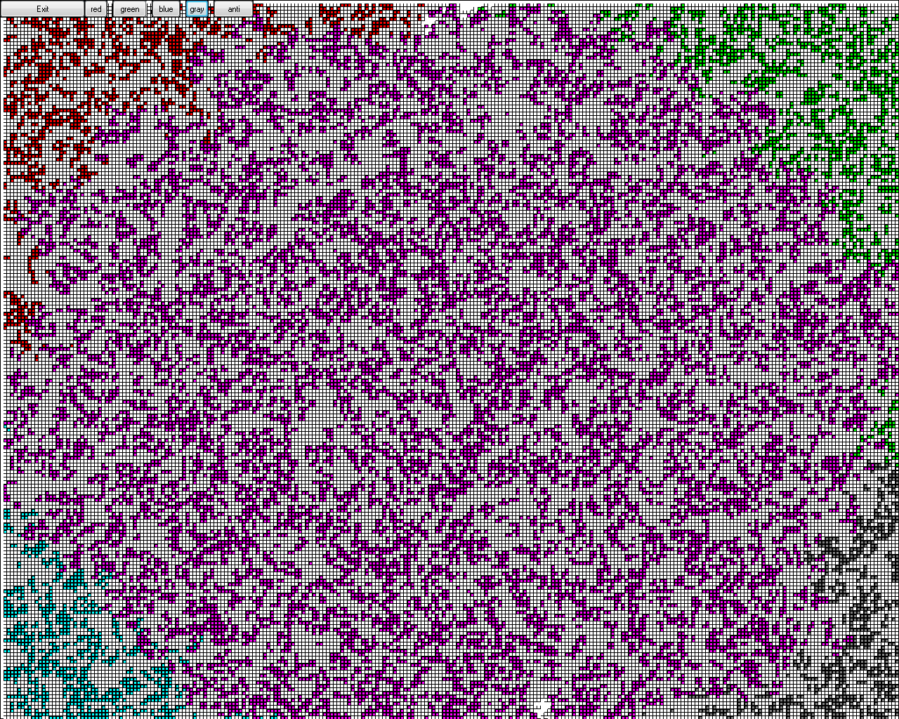 - добавил различные цвета, теперь выходит что-то вроде борьбы пикселей.
