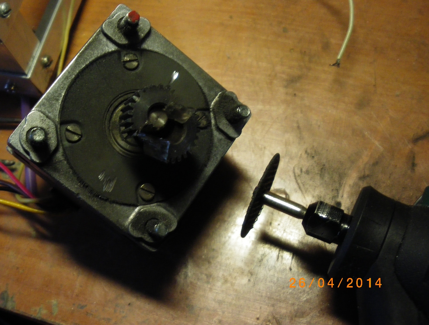 Спиливаем шестерню с вала - она не нужна. Спиливаем потому, что съемником не располагаю, а вот гравер есть.