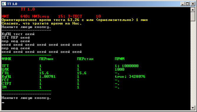 Ориентировочное время теста 63.26 с или (приблизительно) 1 мин