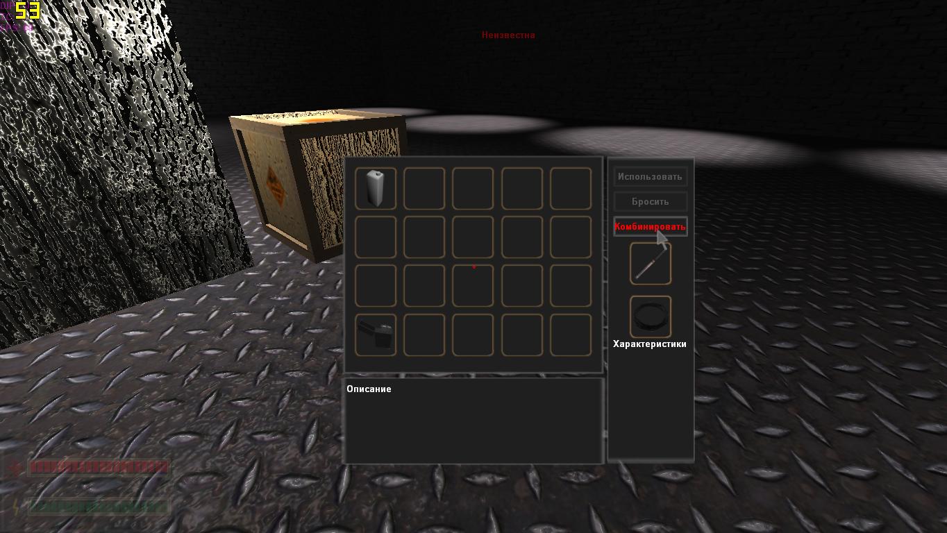 Сделал инвентарь с возможностью комбинирования предметов. В игре будут такие задания - типа чтобы взорвать стену тебе нужно найти детонатор, взрывчатку, провода к детонатору, взрыватель. Потом все это соединить в правильном порядке и установить на стенку. Затем отойти подальше и использовать детонатор. Ну в таком духе.