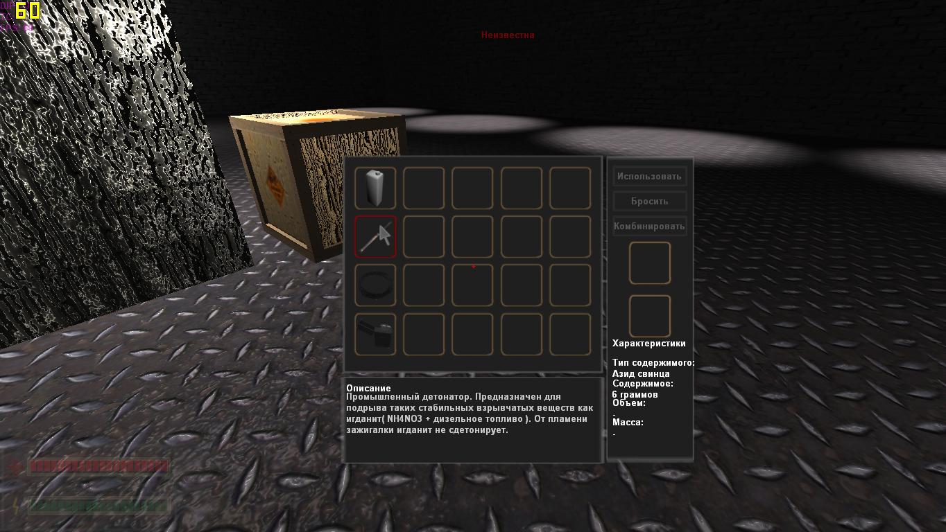 Сделал инвентарь с возможностью комбинирования предметов. В игре будут такие задания - типа чтобы взорвать стену тебе нужно найти детонатор, взрывчатку, провода к детонатору, взрыватель. Потом все это соединить в правильном порядке и установить на стенку. Затем отойти подальше и использовать детонатор. Ну в таком духе.