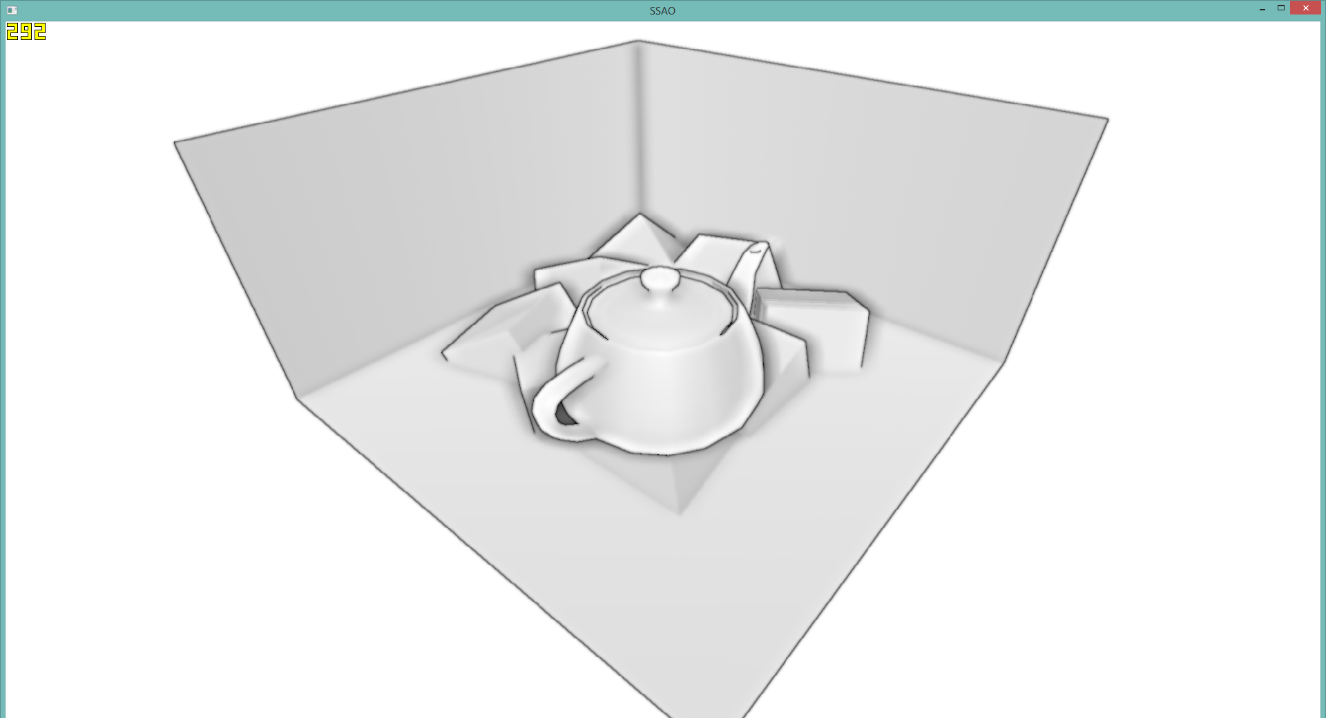 На скрине видно ещё не сглаженный SSAO. Сейчас я переписал ранее написанные в RenderMonkey шейдеры в эффект и собрал приложение на котором можно будет это тестить.