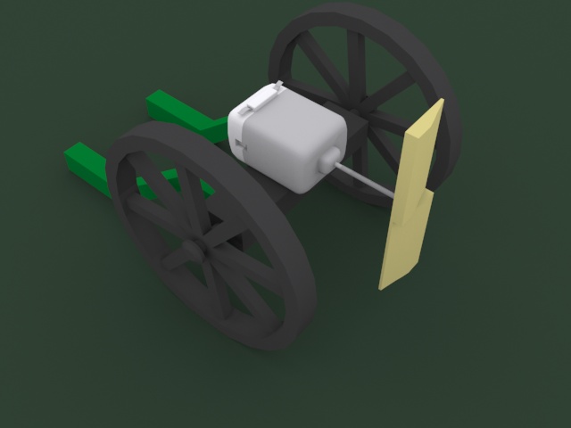 Далее мне захотелось в небо. Я нашел в сарае пушку на колесах. Пушка была оторвана, токарный станок для пластилина был разобран и приделан к колесной базе. Так же был с любовью выпилен и выдолблен из дерева пропеллер. Далее на моторчик был насажен пропеллер при помощи обрезка пастика от шариковой ручки подплавленый спичками что бы влез на кончик моторчика. Пропеллер был настолько ущербный, что от вибрации эта конструкция катилась по столу и я представлял, что это вот вот взлетит!