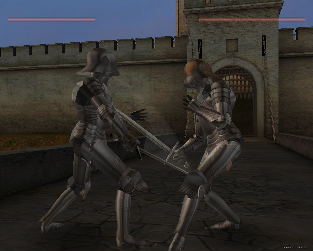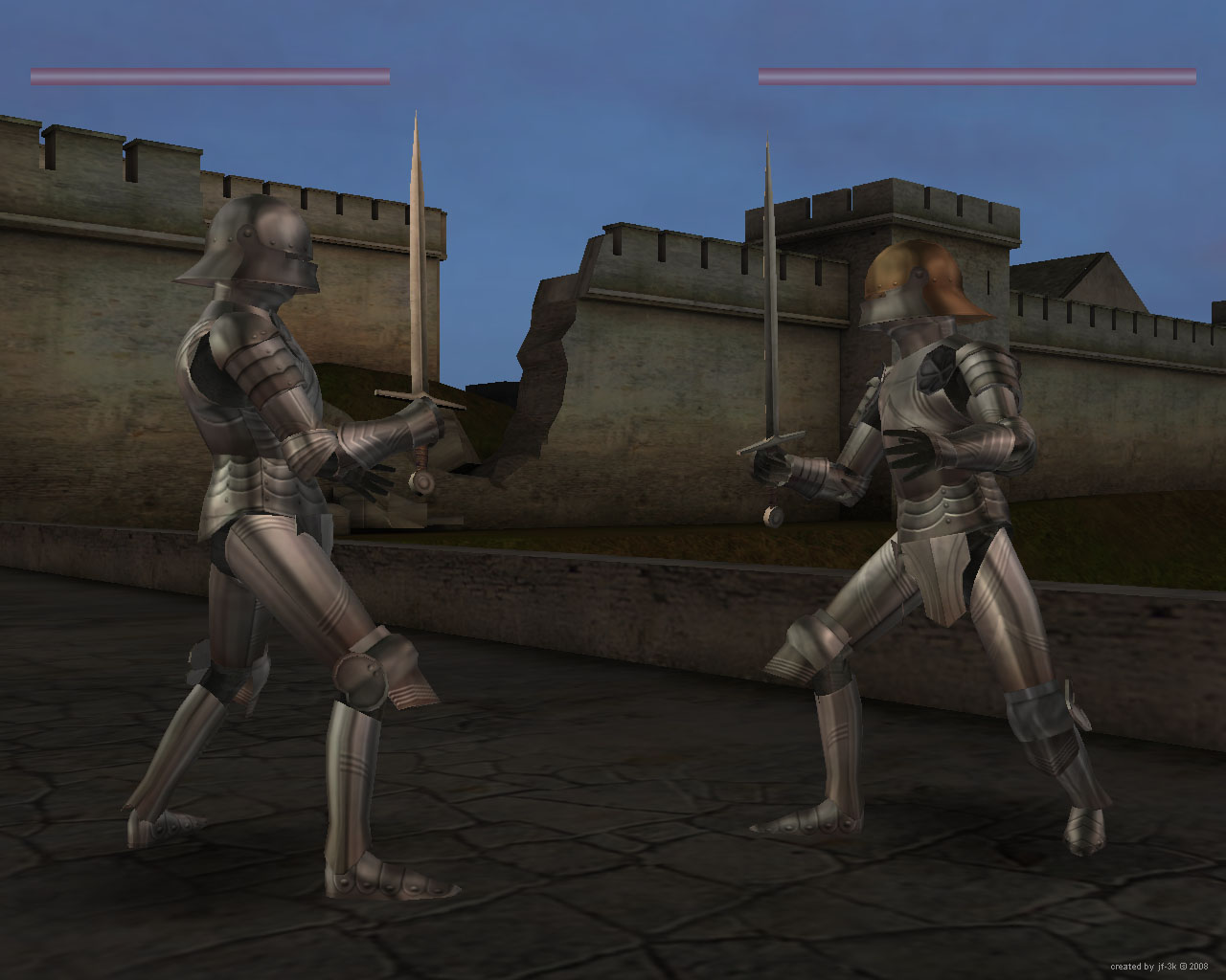 Файтинг/слэшер в сеттинге средневековой Европы второй половины XV века (Франция, Бургундия, Швейцария), делал в 2008-ом. Чистый Блитц, за исключением пакера от Максуса. Меню не успел сделать, так как начал разбираться с патфайдингом и плавно перешёл к поделке FPSа. Прожект остался без патфайдинга и меню. Основные установки можно менять в текстовом файле game_set.txt. Анимация в прожекте оригинальная.