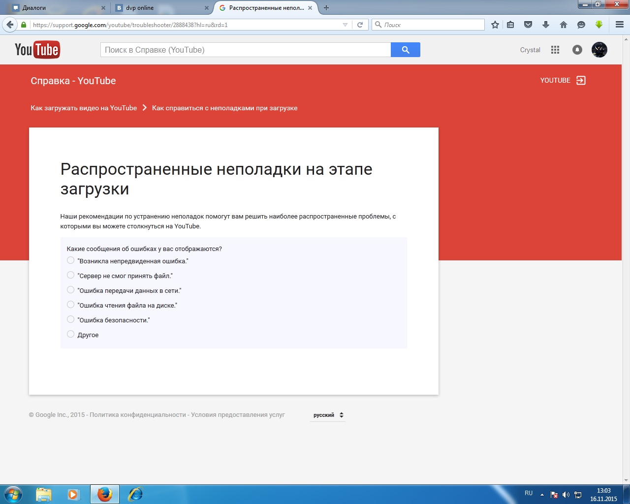когда это дерьмо появится на ютубе. Раньше работало ровно,