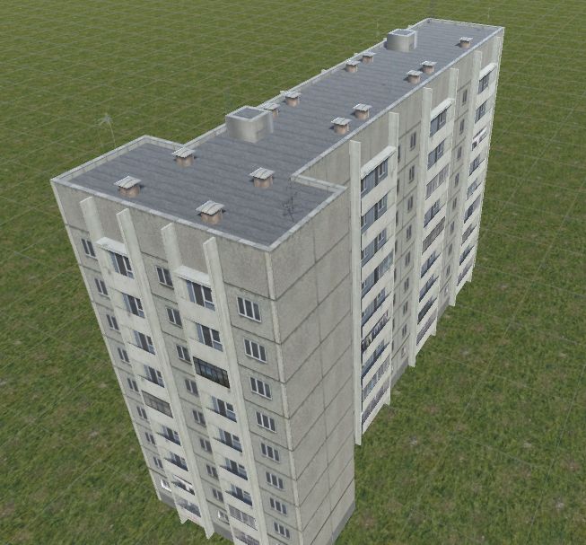 Вот решил еще поиграть текстурой, получился почти другой дом. LOD1 - 2630, LOD2 - 702, LOD3 - 18. Дальше пятиэтажки