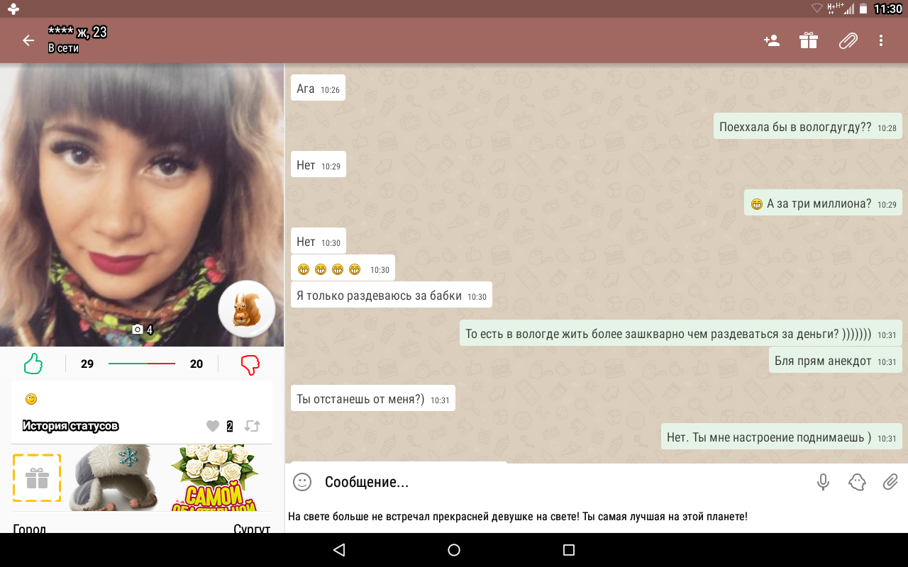 у меня дома. Угадай с чего она начала знакомство? :D