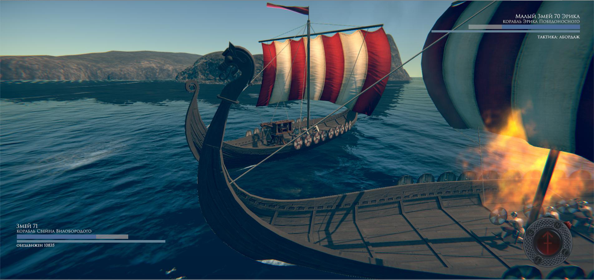 Реализовано пока только сражение на море. Абордаж пока только при включенном автоуправлении кораблём.