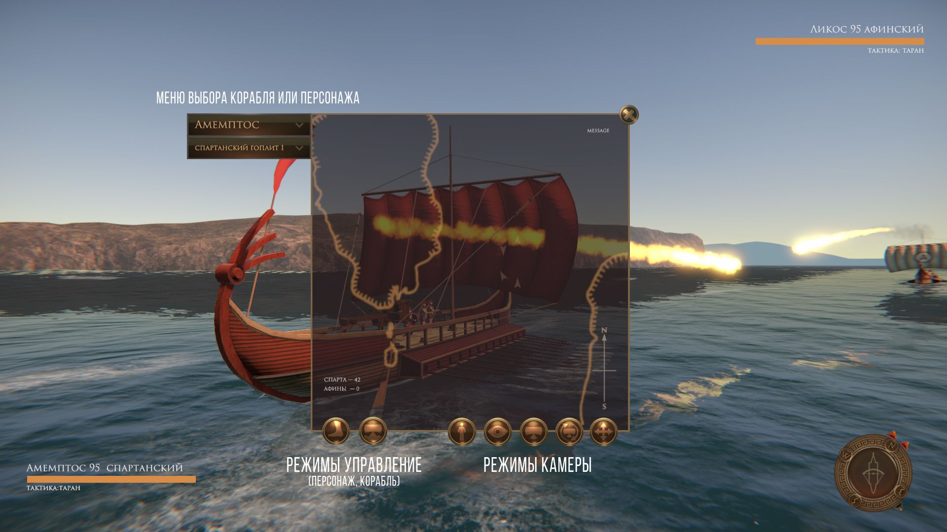Управление палинтоном (режим боя на море)