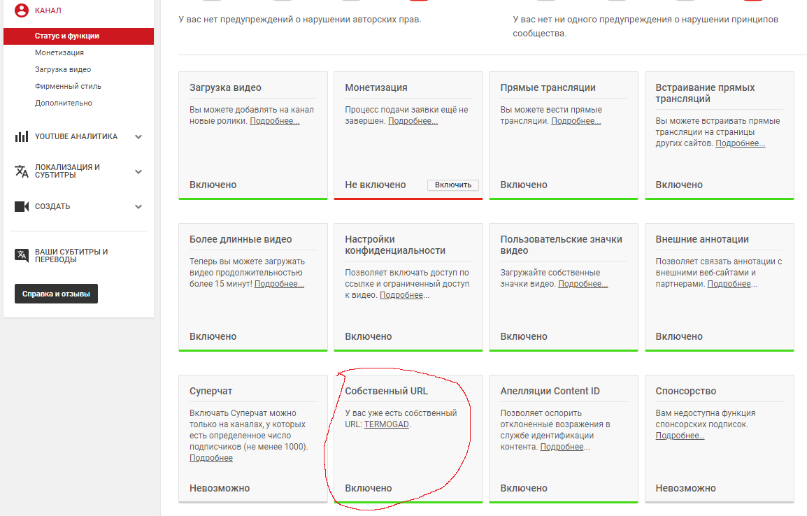 (по факту не домен, а ссылка, моя: www.youtube.com/termogad).