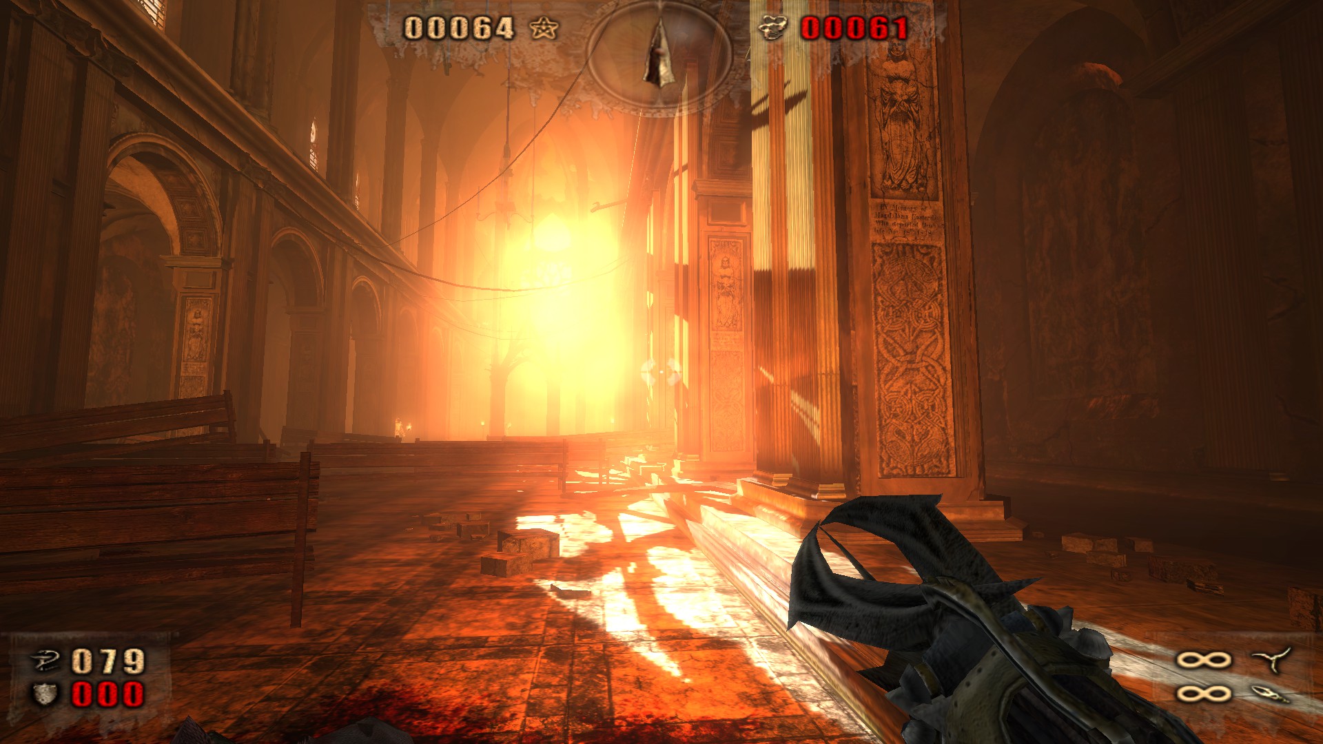 Так вот авторы Painkiller сделали распрыжку элементом геймплея, и это было довольно прикольно распрыгиваться по огромным пейнкиллеровским уровням. Но авторы Resurrection почему-то решили, что очень круто врубить коллизии мелким осколкам на полу, в результате игрок постоянно о них спотыкается, сбивая распрыжку. В результате ты очень медленно идёшь по огромным просторам, что бесит. Врагов же это вовсе может ввести в ступор, и они могут решить, что перед ними не мелкий камешек, а непреодолимое препятствие.