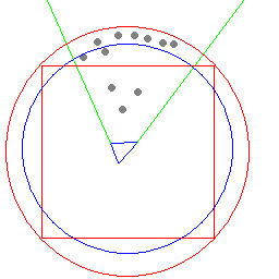 синий круг - это тот радиус обзора, который необходим чтобы картинка отрисовалась нормально, но у нас раидус больше (красный круг) и будут отрисовываться 6 лишних танков, которых мы гарантированно не увидим