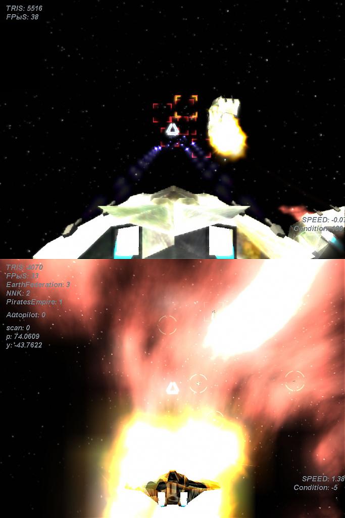 Хотел бы я знать, как "удержания сотен кораблей в битве. Возможно - тысяч" вобще возможно в блитце? Даже при полсотни кораблей с ЛОДом большинство компов загнутся от рассчетов, да еще + если уровень с большими обьектами включается автопоиск выхода, чтобы небыло столкновений с базой, что жрет довольно много.. Можно попробовать симитировать бои в виде бекграунда, но это уже как-то не к стилю..