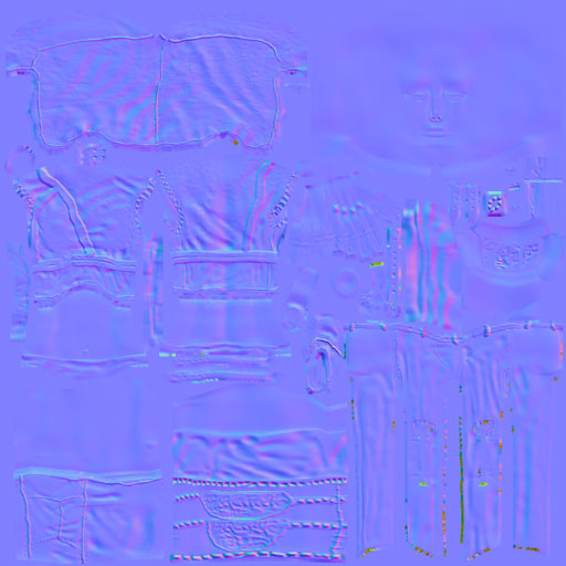 Диффуз я делал из нормала, изменяя цвета кусков(одежда, кожа)