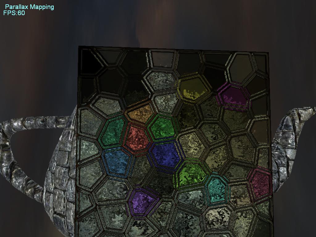 понятно чего у тебя паралакс через задний проход, наложил же текстуру для стены на чайник, додуматся надо было до такого...