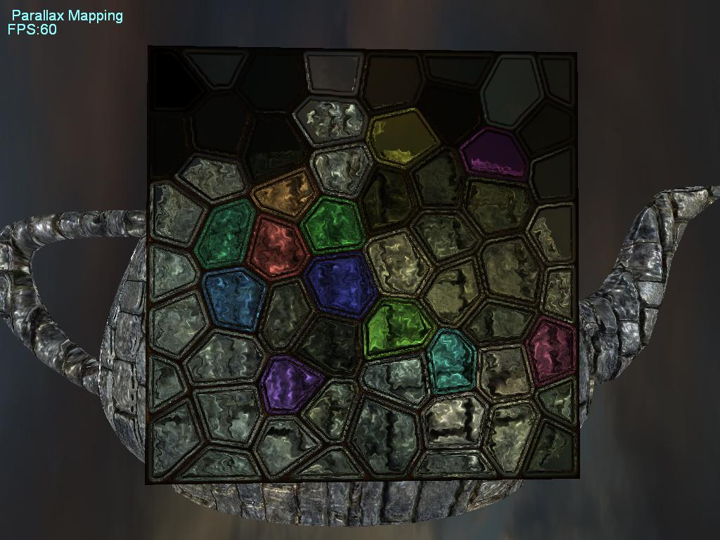 понятно чего у тебя паралакс через задний проход, наложил же текстуру для стены на чайник, додуматся надо было до такого...