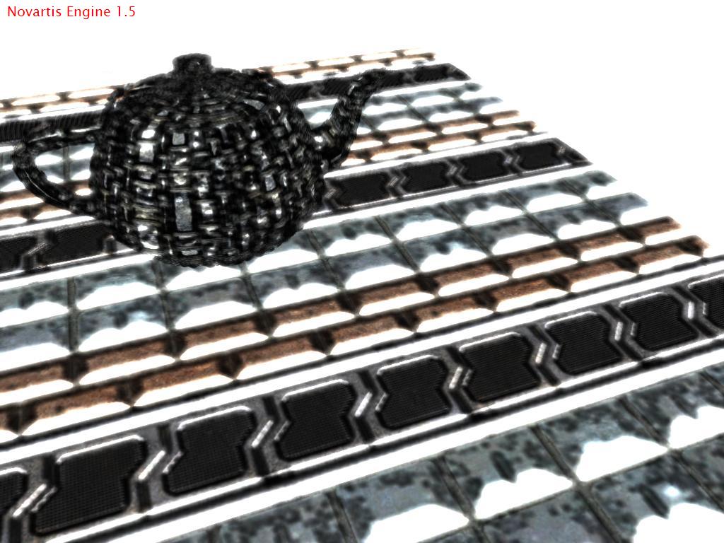 Там где чайник свзяка пост процесса:deferred shading,bloom,anisotropic lighting + normal mapping,ssao(правдо вроде когда фотак скрин было отключено).