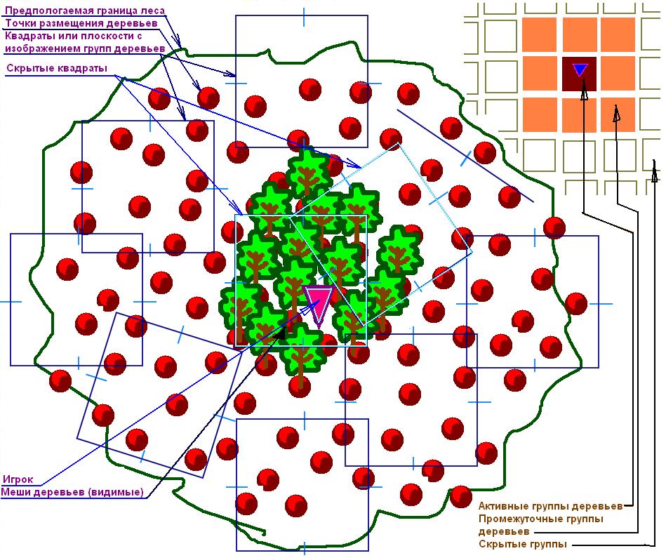 ну что вы. нужно скывать "рощи", имхо, чем поодному дереву. т.е. парентить скажем сотню деревьев к одному пивоту и скрывать\показывать его. еще лучше сделать ету "рощу" одним сюрфейсом.