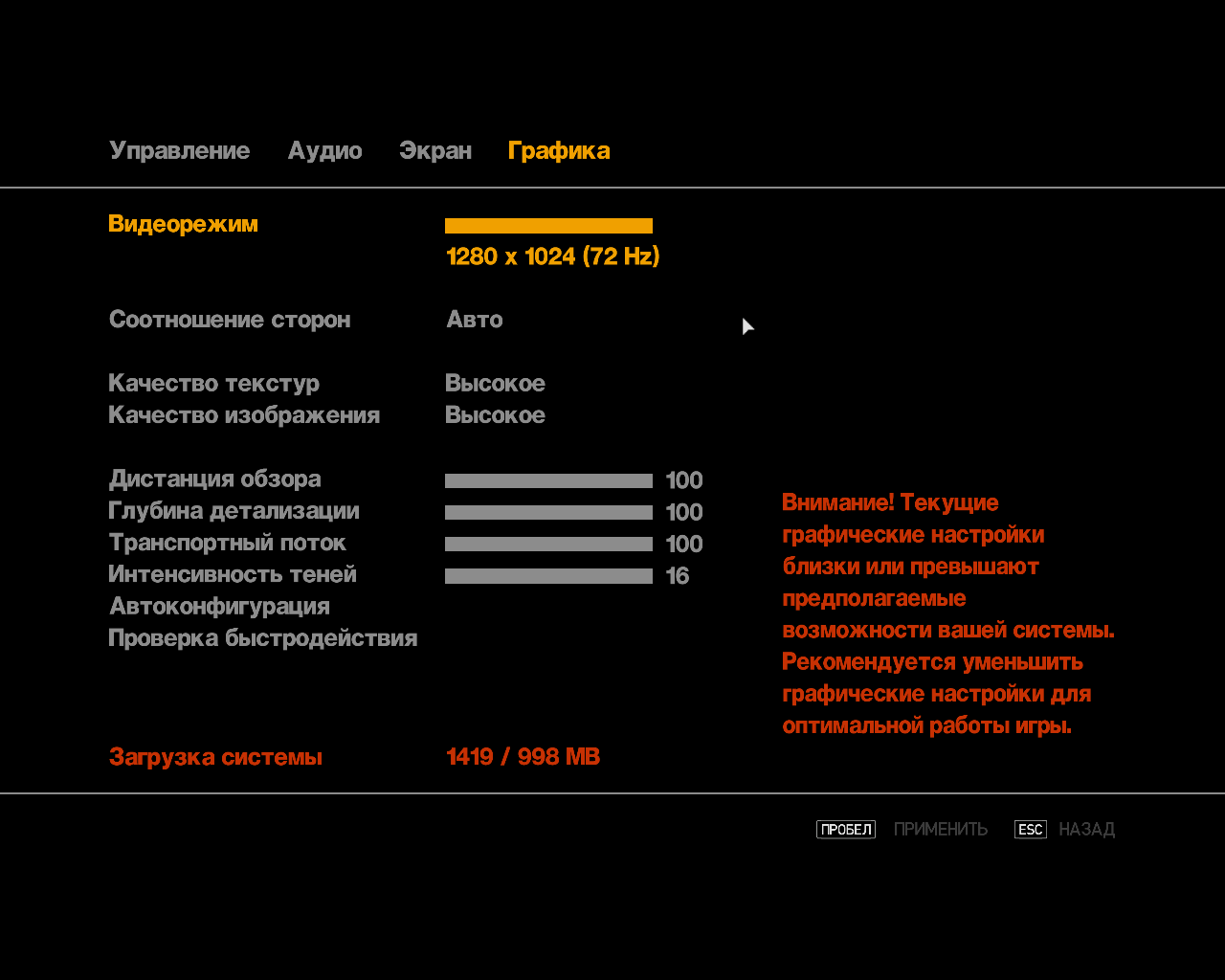 Такое чувство, будто не всё выставленно. Оно шустро, но графа не аццки какая. Я не знаю, мож такая и должна быть. Во всяком случае настройки выглядят так: