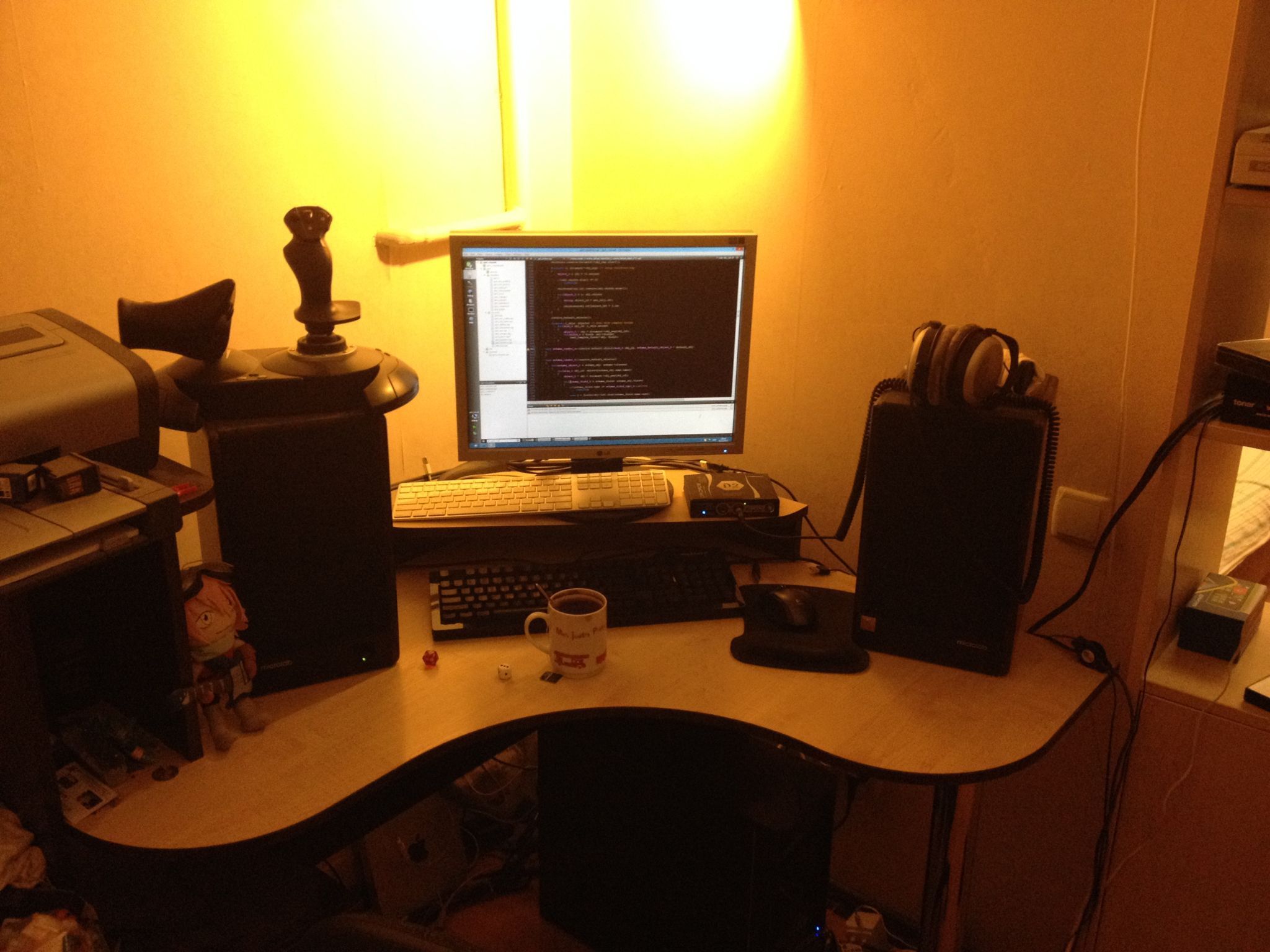 В общем мой рабочий стол нифига не изменился. Надо было фоткать 24 часа назад, комп был на тумбе рядом, свалка в комнате, с ковриками пыли