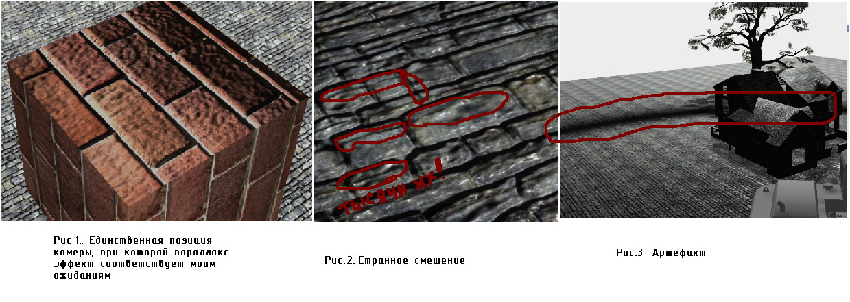 нормально заработала только 1-я. При использовании параллакса возникло странное смещение, показанное на рис. 2, остальные техники порождали еще более страшные артефакты, рис. 3.