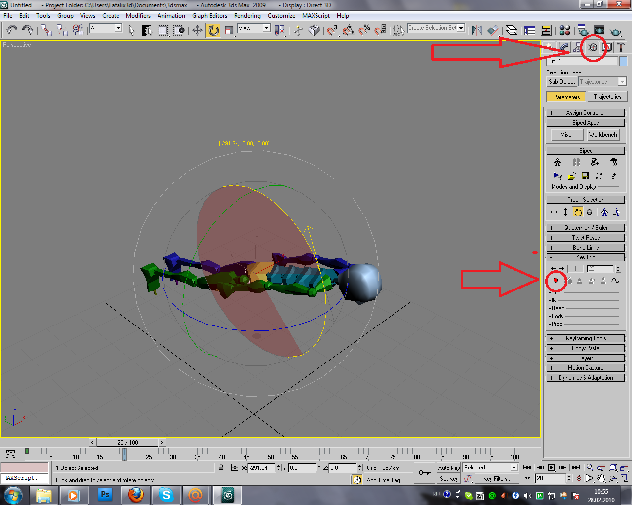 -Ставлю в максе "Autokey", чтобы сделать анимацию(сальто)