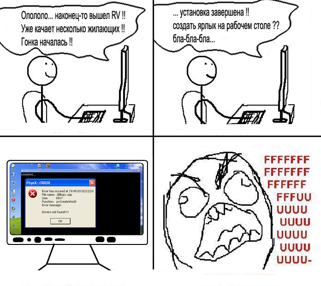 Я как идиот стучу по всем клавишам и ору: "Тваю мать! Ну куда оно едет?! Я не туда жму!" Итог: машина в смятку, клава на помойку, все присутствующие в шоке.