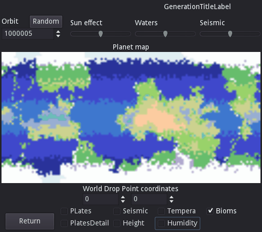Спасибо! Маленький размер карты планеты обусловлен необходимостью в большом количестве расчётов, особенно это касается вычисления влажности. И чтоб как то сохранить реалтайм пришлось ужаться в такие размеры.