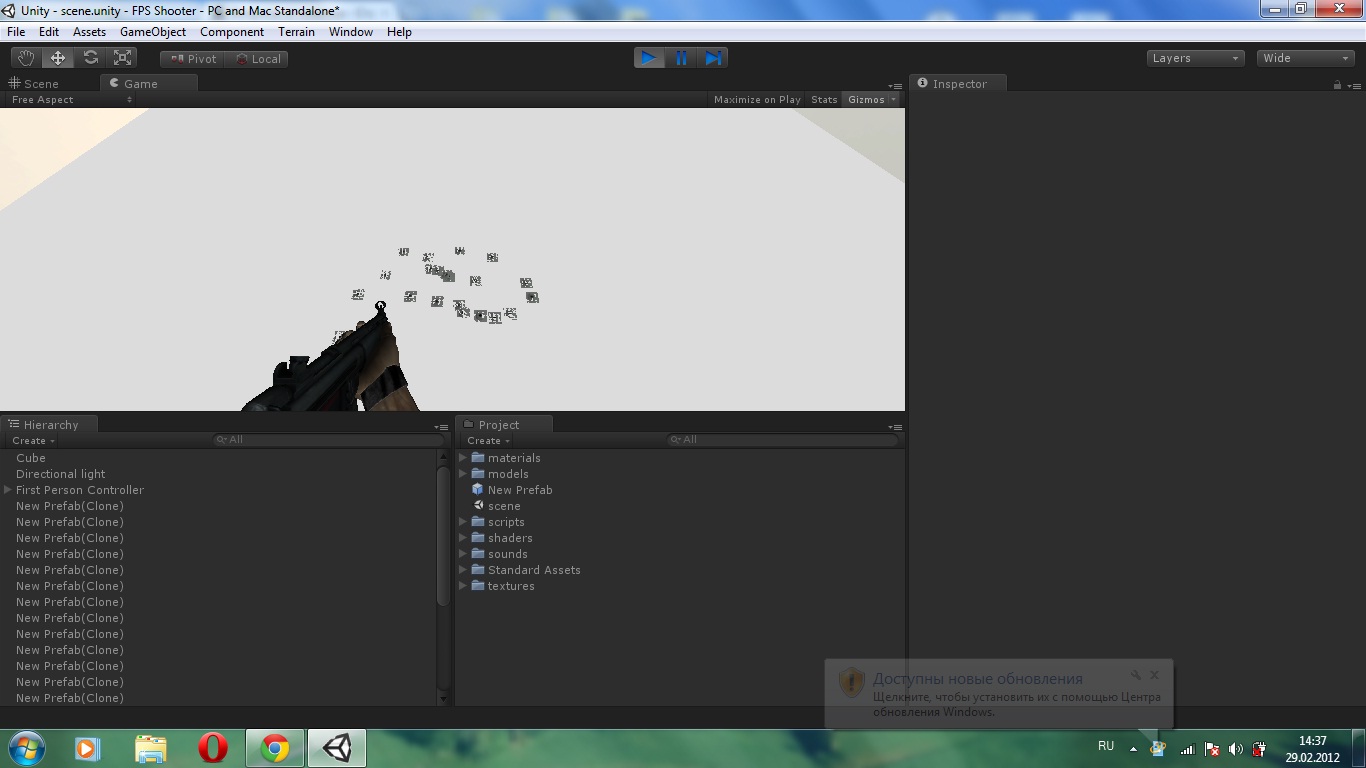 1) создал plane и нанес на него текстуру отверстия от пули.
