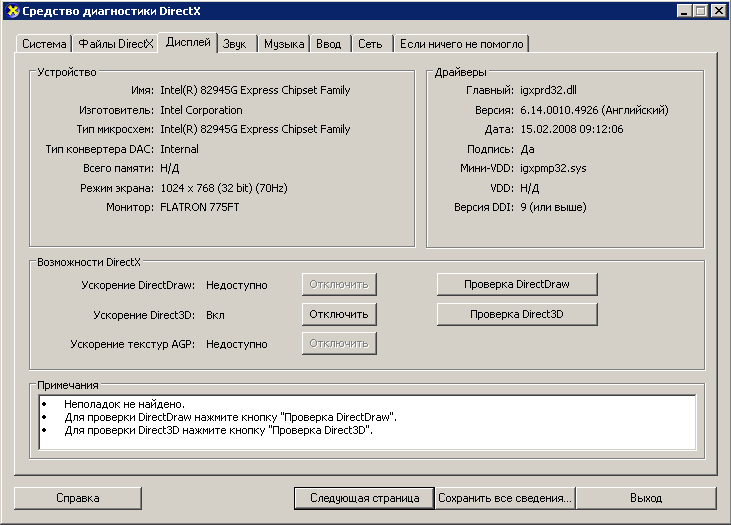 Внимание на ускорение DirectDraw и AGP