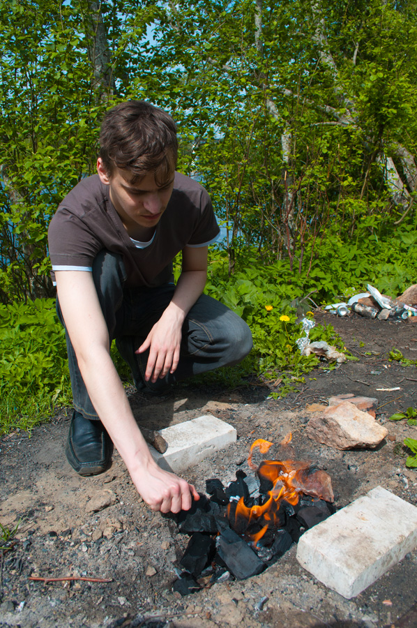 Какой-то спрайт огня лажовый, нереалистично совсем. А материалы человека хорошо настроены, прям труЪ