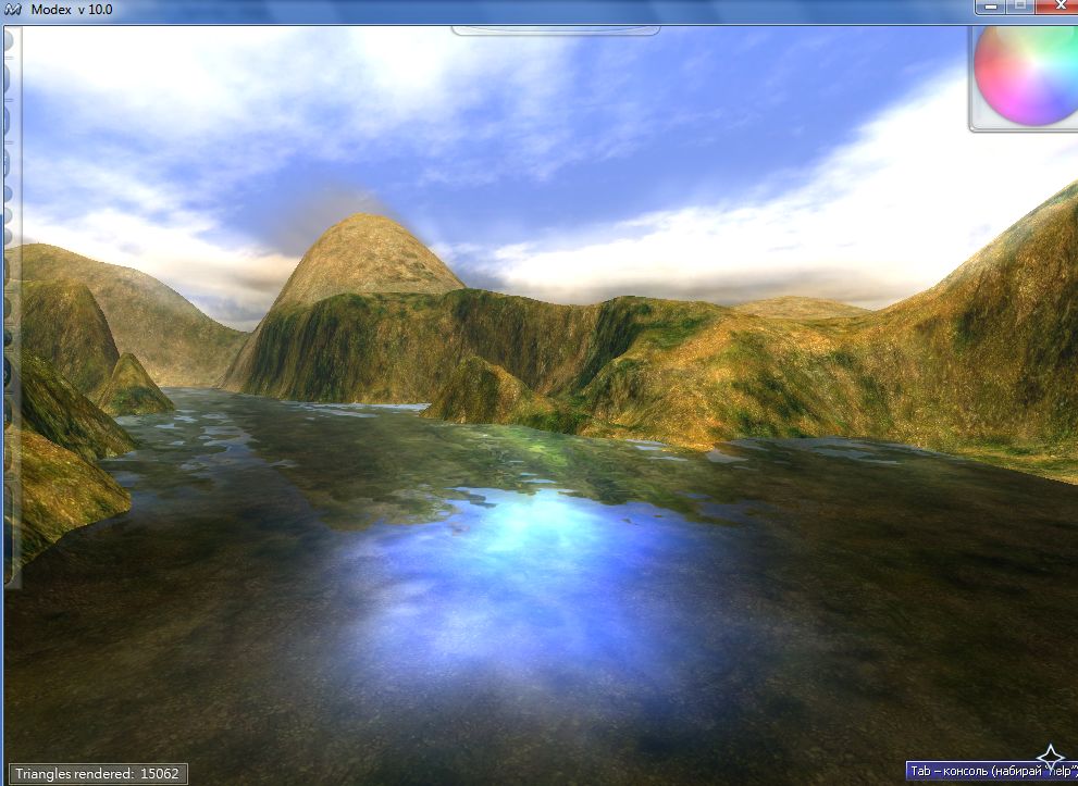 PS Nafi: вайрфрейм как то забыл, сори, в следующей деме будет. А насчет воды - так то, что в деме, это волны, только они настолько рандомны, что непонятно, что к чему. Суть в том, что в с рандомным периодом вода встряхивается в рандомной точке, но несильно. Потому выглядит это примерно так же, как и поверхность воды в бочке во время дождя. Только замедленно. Сделаю на пробел потом мощное встряхивание