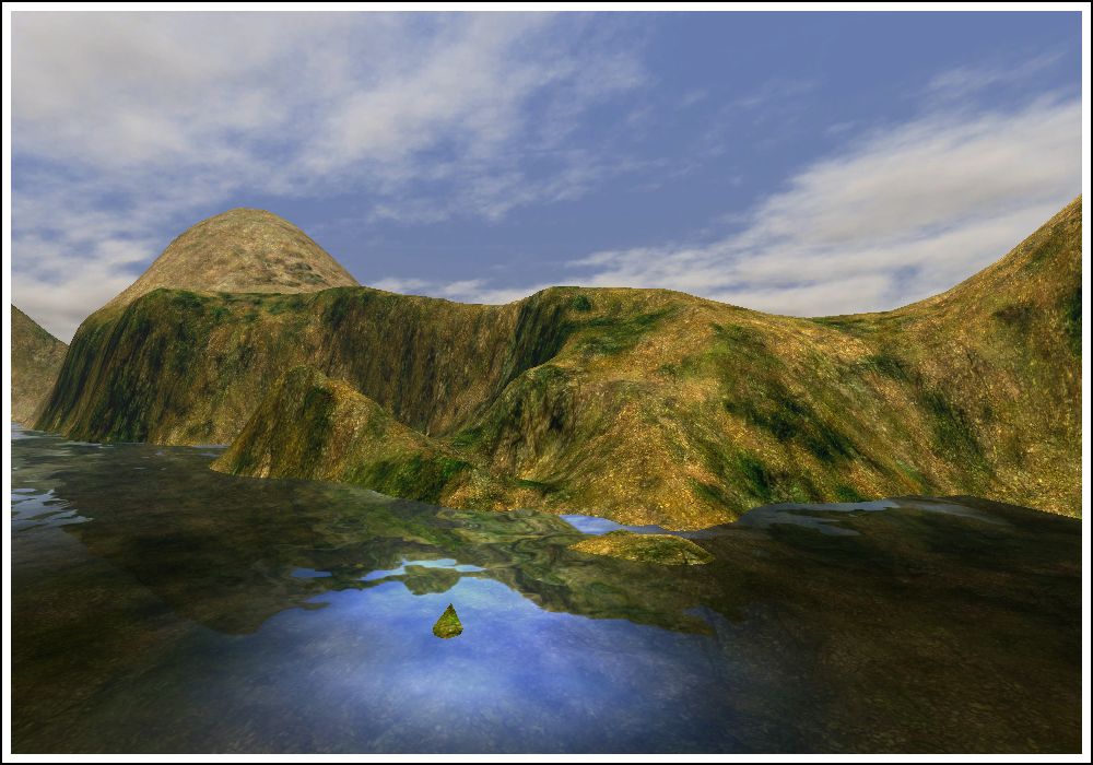 Хм, и что же я вижу?? водичка с рефлекшеном... Вашими фастлибами у меня будет выбивать такой эффект в 5-10 ФПС, + ландшафт явно "прекомпиленный". выглядит здорово, ничего не скажу, но это не то)