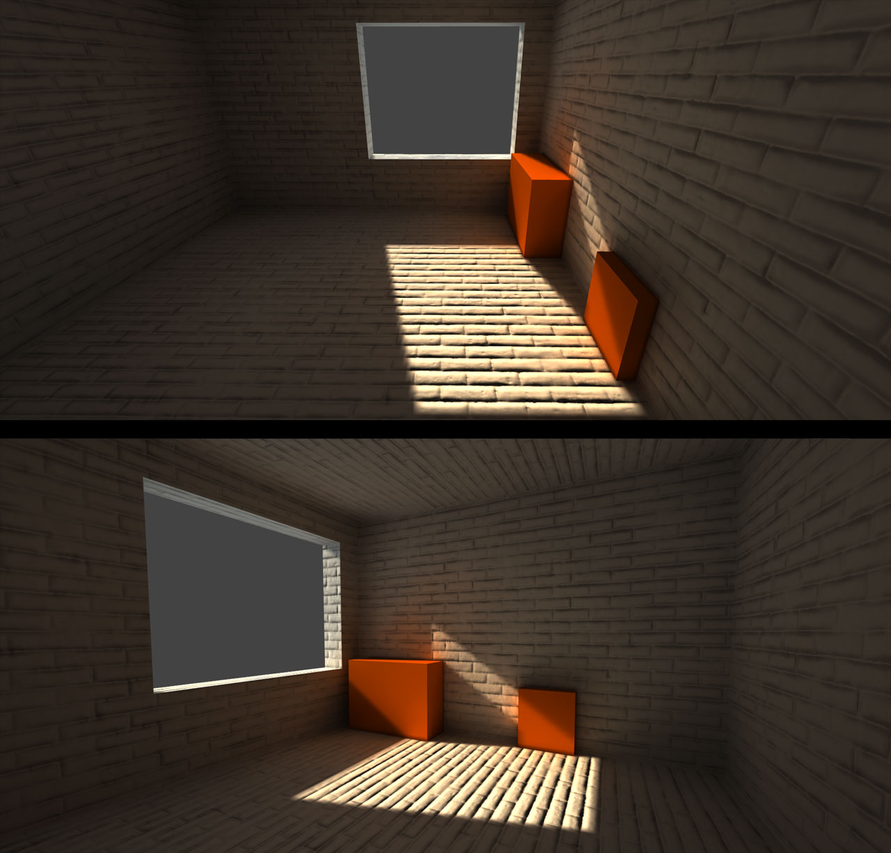 чтоб было видно что с одной стороны кирпичика идёт свет от одного источника, с другой - от другого.