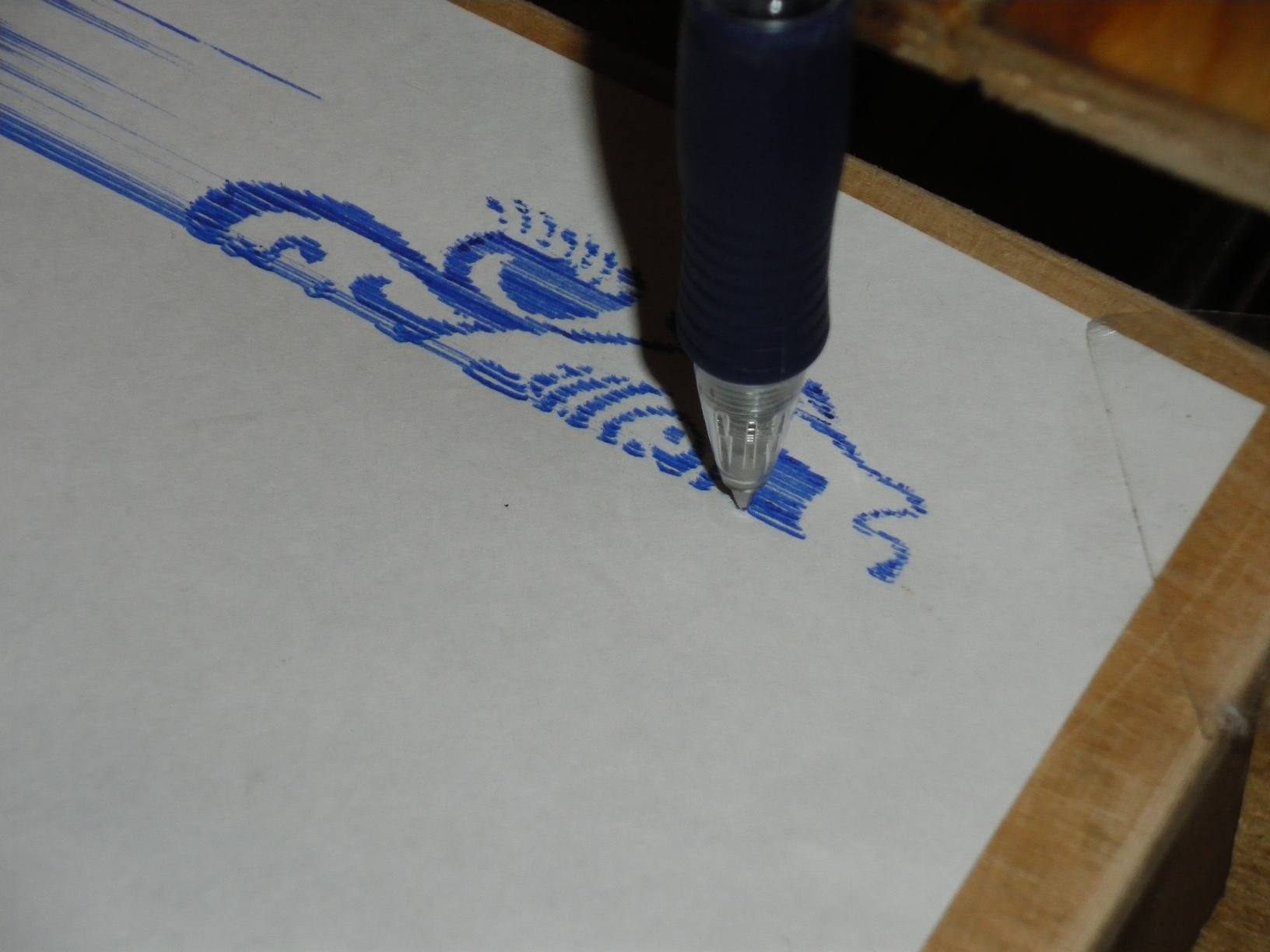 О рисунке. Просто рыба  . Полосатый слишком получился. Да я еще не отрегулировал всю механику. Потом.