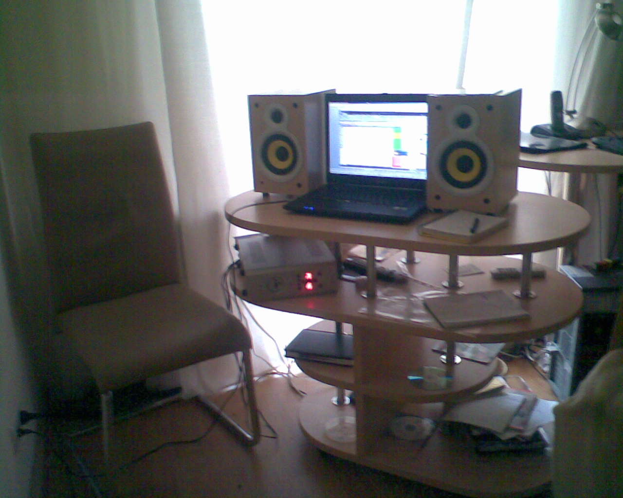 колоночки вроде Соло 2. Еще вижу ПК в углу и монитор спрятал  Фото делал на сотке или типа того.