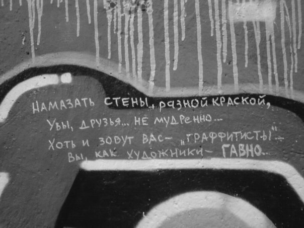 Всегда огорчали надписи с претензией на остроумие с ошибками в каждом втором слове.