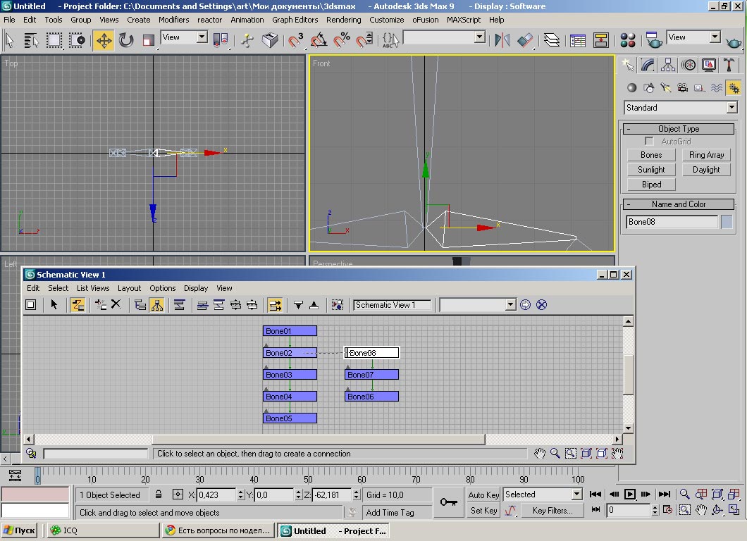 Вот возникла проблема. Создал человечка, затекстурил, а скелет натянуть не могу, ибо не знаю как раздвоить кости. Кто нибуть знает как это делается???