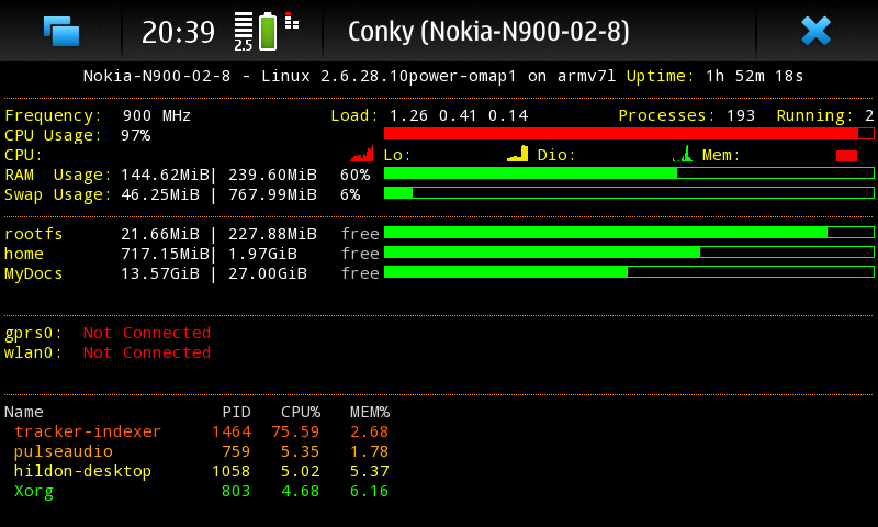 совсем не давно открыли возможность разгона CPU в N900, возможный разгон 200% и больше, для большинства 150% (в принципе еще для xscale говорили что 2 ггц в мобильнике не проблема, проблема в батарее), то есть 1200 мгц в кармане это реальность, 900 мгц это будни, при 900 мгц N900 становится сильно отзывчивее, как iphone который до этого вылизывали 3 года, аудио на флеше перестает тормозить совсем, теперь врубил плеер на сайте и свернул приложение и играешь в что-то, а прокрутка списков на тысячи элементов вообще летает