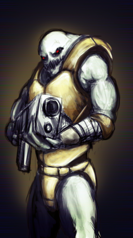 Жилы кибернетические должны были быть). Худоба как раз специально). Не хотел его слишком накачанным делать для более зловещего вида).