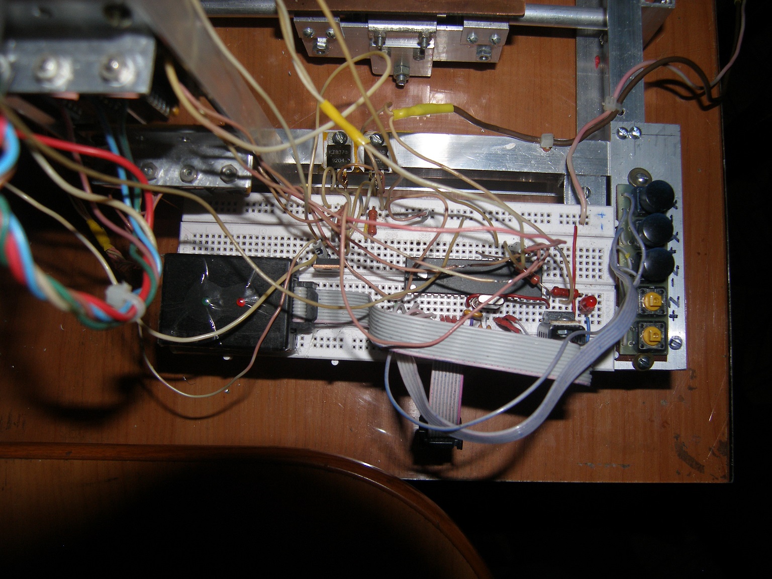 С механикой та же фигня. Ну не тянет меня тратить килобаксы на детали. Купил в строительном магазине алюминиевого профиля всякого разно и погнал. Никаких CAD не использовал - всё на глаз. Несмотря на это, конструкция получилась очень жесткая( на видео заметно что ручка "прыгает" по бумаге, но это чисто зазор между стержнем и корпусом ручки влияет ). Единственное, с чем лопухнулся, так это с направляющими - надо было ставить квадратную трубу, а не круглую - из-за этого есть продольный ход оси Y ). Механику делал дома при помощи: дрели( на стойке ), кучи сверел, зенковки, ножовки по металлу. Двигатели из принтеров. Кароч бюджетный вариант - любой сможет повторить - отпугнуть может лишь дохерища отверстий и куча винтов.
