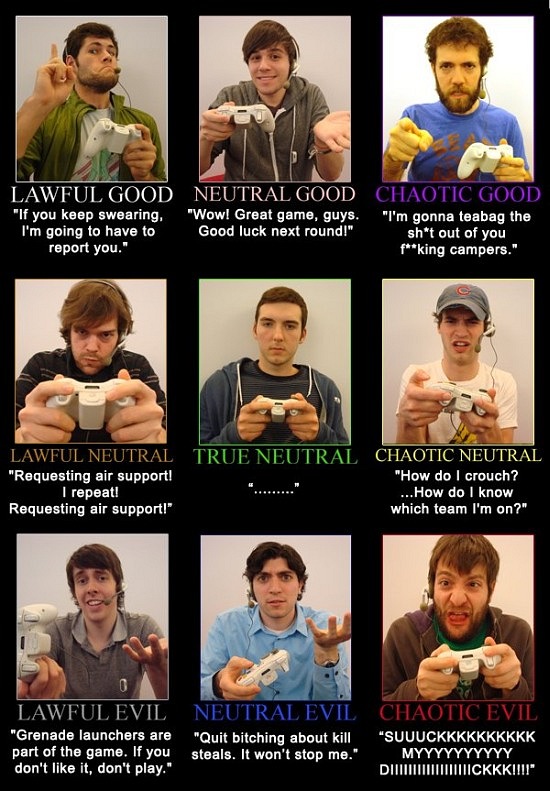 Считаю себя Neutral Good/Lawful Evil(зависит от настроения)