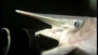 ловит добычу, выдвигая челюсти и втягивая в пасть воду вместе с жертвой. Вырост на носу содержит большое количество электрочувствительных клеток и помогает акуле находить добычу в глубоководной темноте.