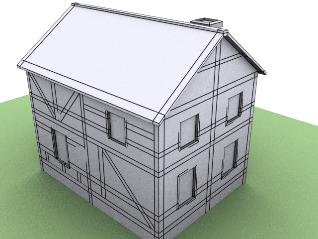 Хорошо скажем) Балки по прежнему стрёмно пересекают окна и разложены без всякой логики. На крыше неэкономия полигонов. Трубу "пучит" как в сказках  Второй этаж ниже первого.