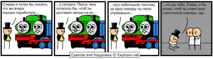 Хех, я тут порылся, оказуется, паровозы Перси и Томас - это персонажи буржуйской детской книги: