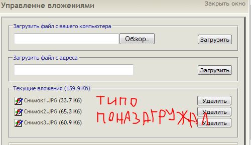 Просто нажимаешь "управление вложениями", загружаешь файл и нажимаешь "отправить" без предварительной вставки вложения в текст сообщения из редактора.