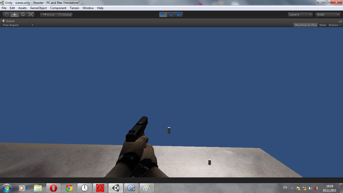 Пытаюсь сделать вылетающую гильзу. В объекте оружия создаю две точки: